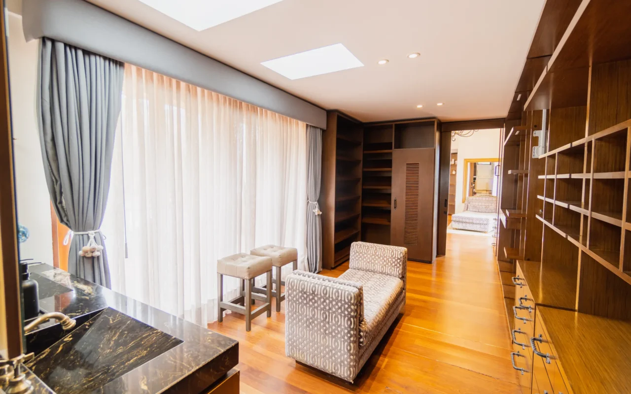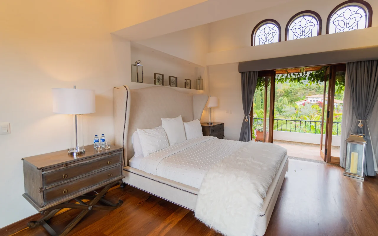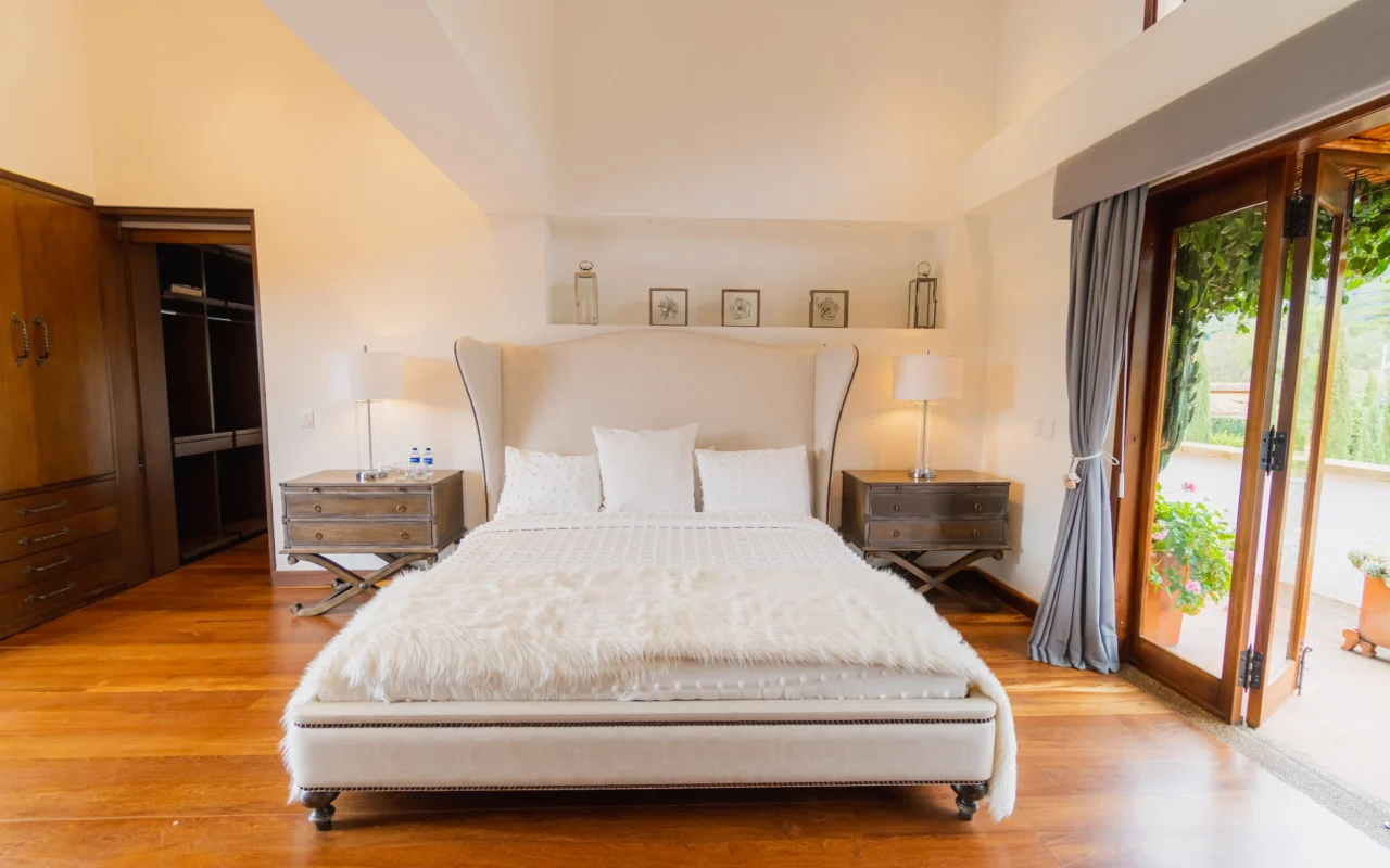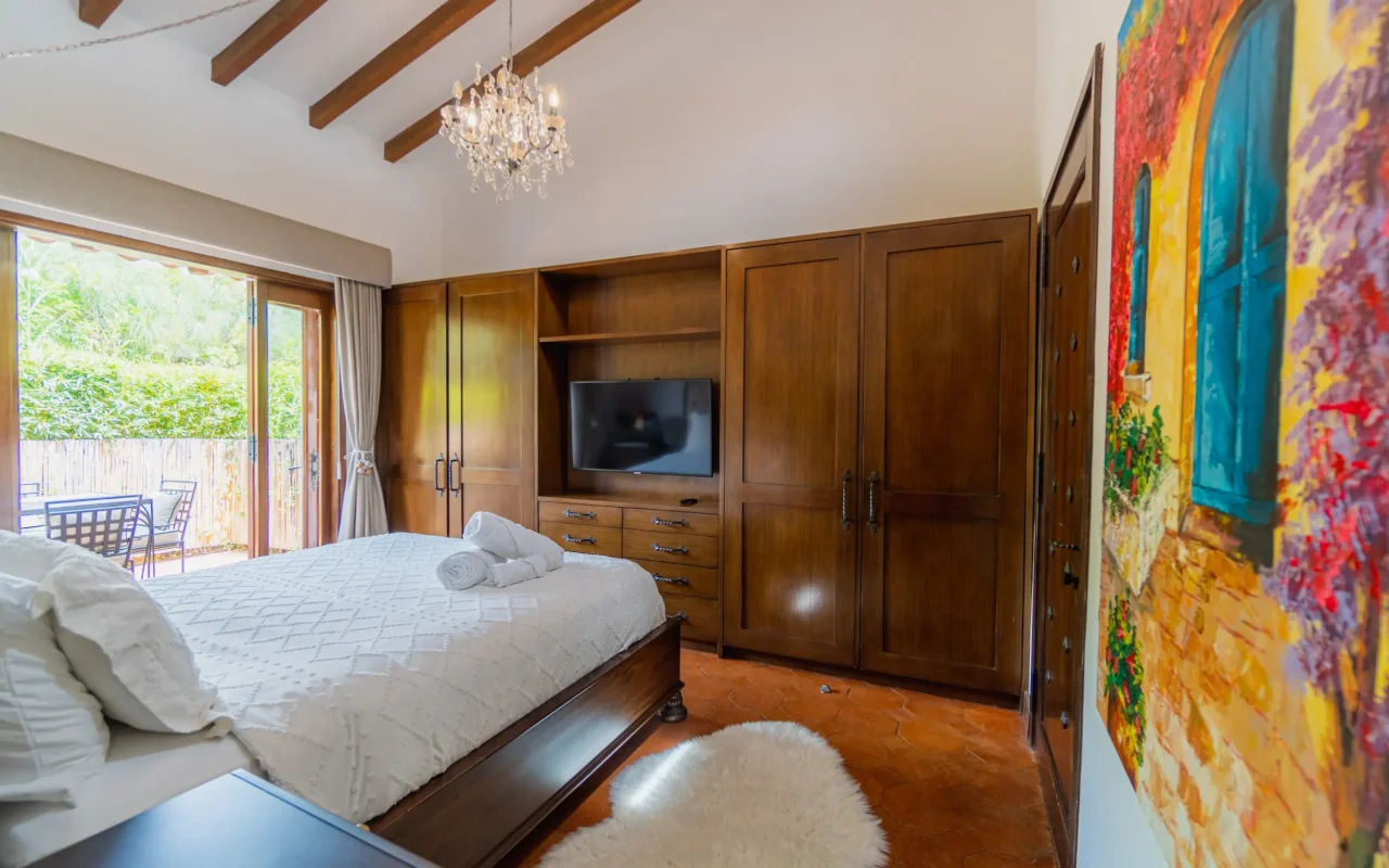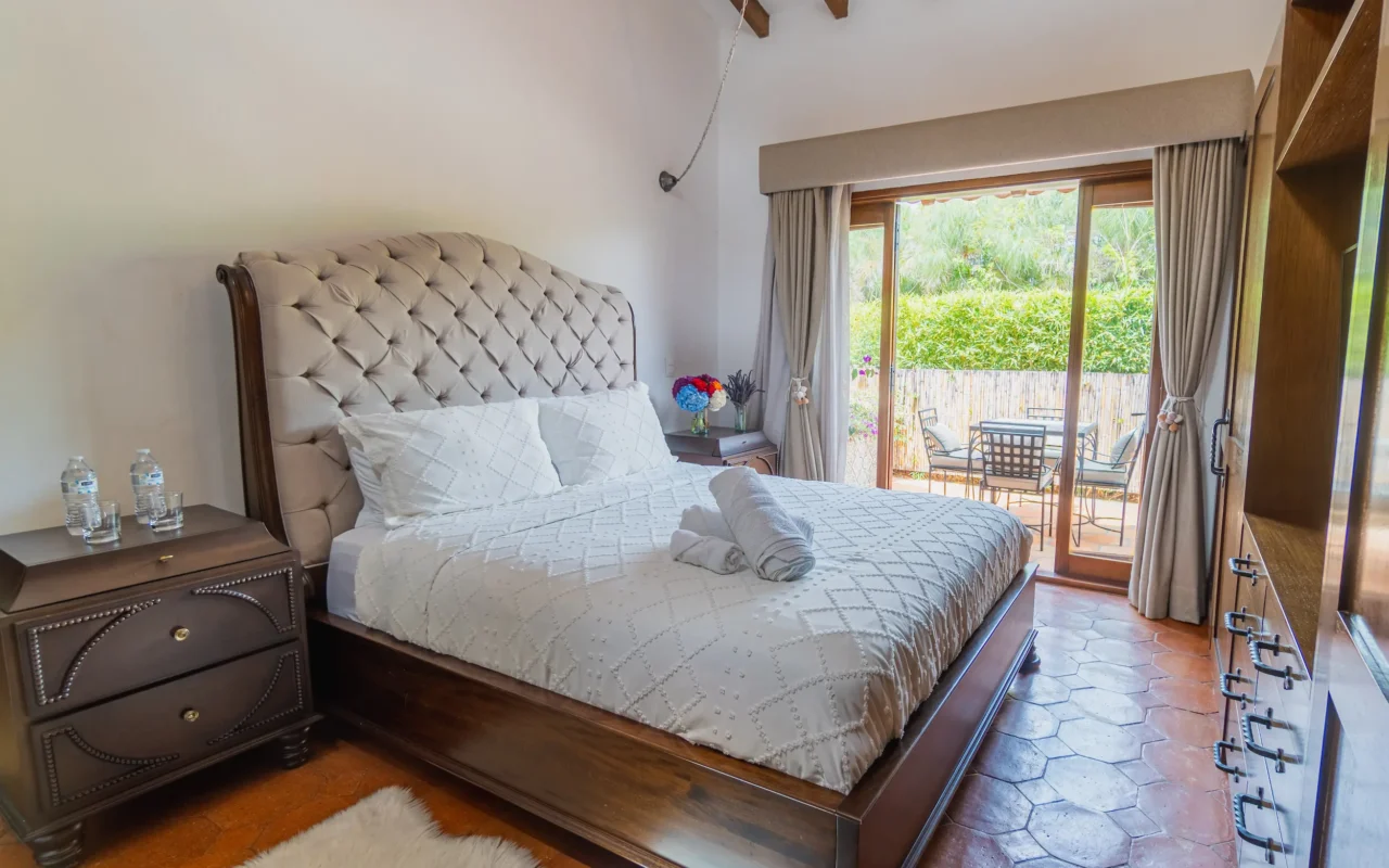 Suite ubicada en el área de la piscina de la casa principal, con terraza privada y amplios closets. Ofrece un ambiente acogedor y funcional, con amenities de lujo que garantizan confort y bienestar durante toda la estancia.