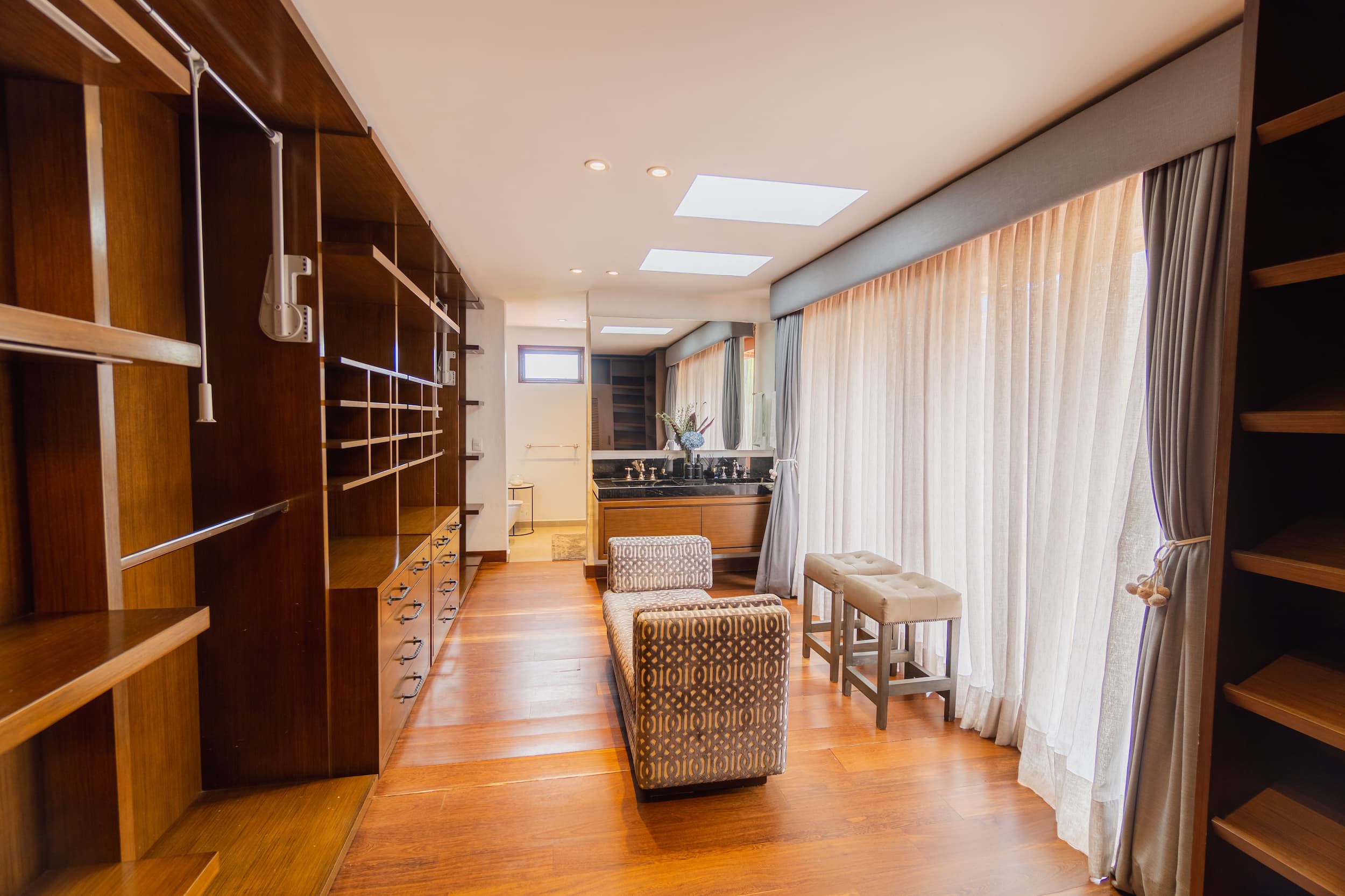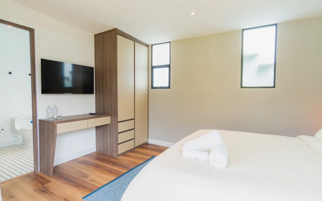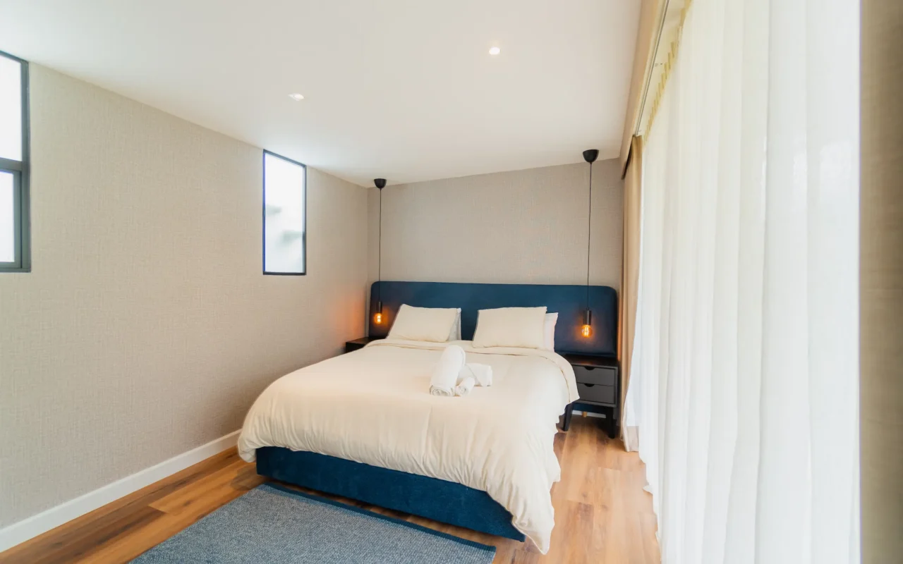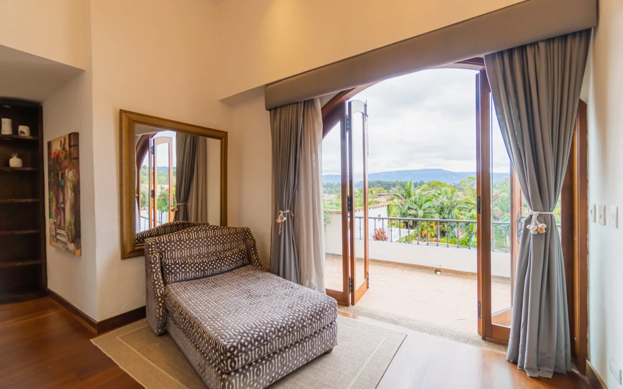 Suite ubicada en el área de la piscina de la casa principal, con terraza privada y amplios closets. Ofrece un ambiente acogedor y funcional, con amenities de lujo que garantizan confort y bienestar durante toda la estancia.