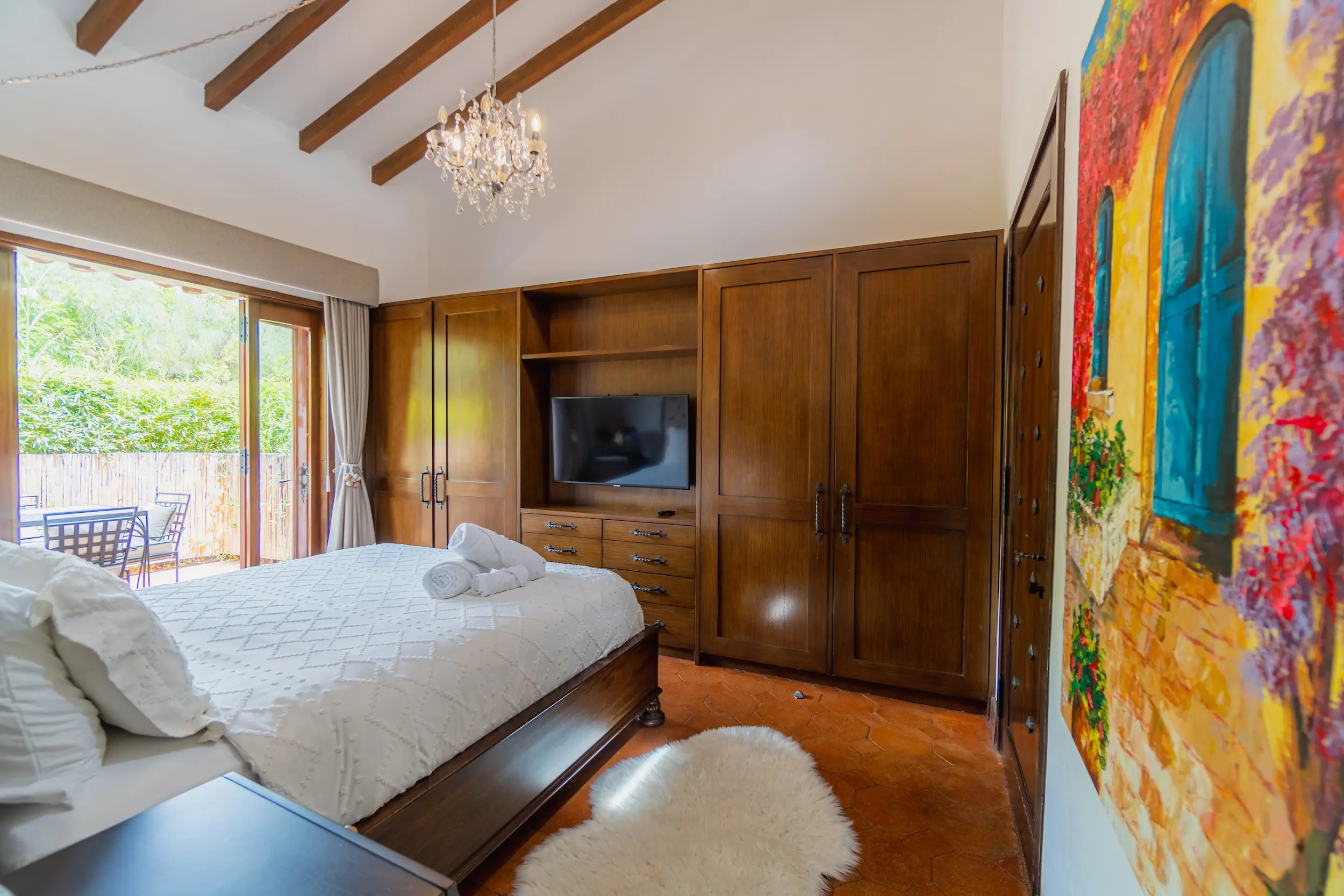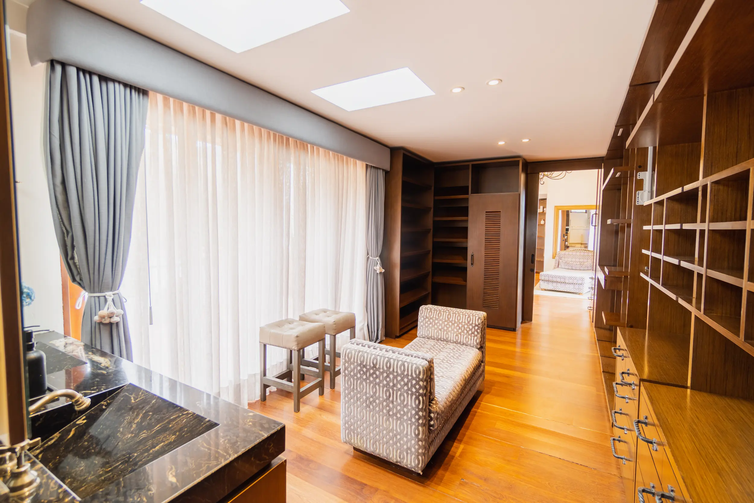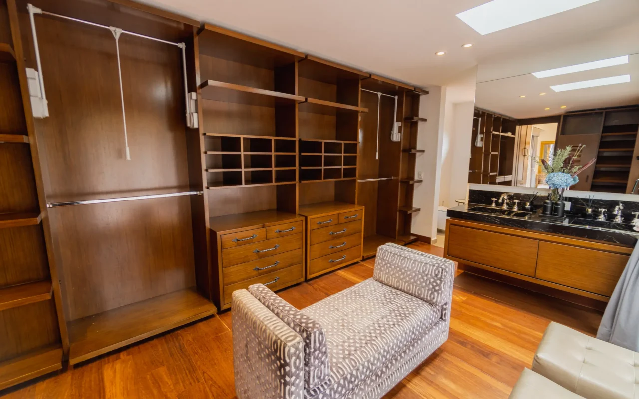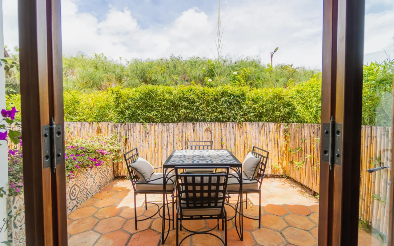 Suite ubicada en el área de la piscina de la casa principal, con terraza privada y amplios closets. Ofrece un ambiente acogedor y funcional, con amenities de lujo que garantizan confort y bienestar durante toda la estancia.